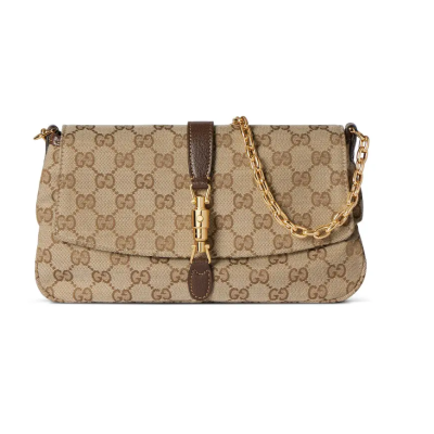 2026春夏系列全新上市。这款晚装包的设计灵感源自意大利传统的餐前小酌习俗,以及只需携带随身物品的自在时刻。这款手袋甄选轻盈挺括的GG帆布打造,以复古风格沙色配色匠心呈献,缀饰精美链条,另附一条可斜挎背携的包带。